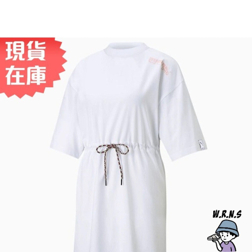 PUMA 女裝 短袖長版上衣 連身裙 修身 純棉 白 歐規【 W.R.N.S 】59970402