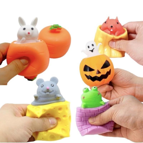 [現貨]小動物減壓捏捏樂 萬聖節南瓜幽靈裝飾品 起司老鼠 井底青蛙 蘿蔔兔子 樹洞松鼠 幼兒園小禮品 小贈品