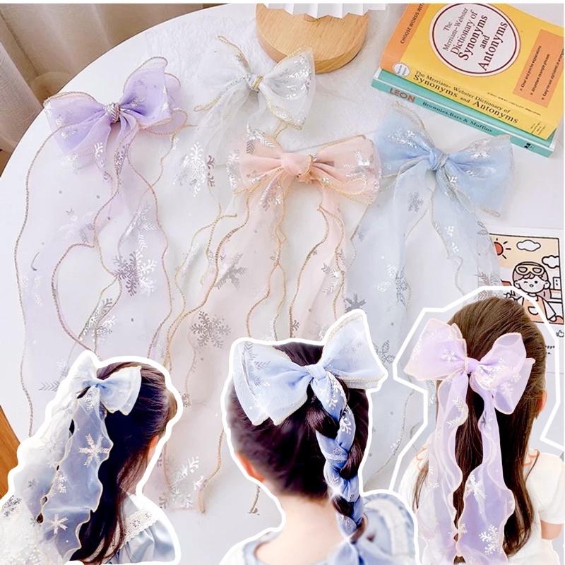 [現貨]超仙女童紗網蝴蝶結飄逸公主髮夾 可編髮女童公主髮飾