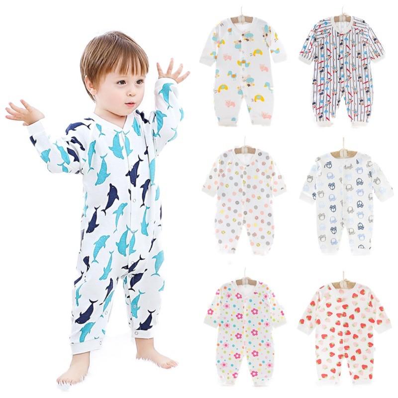 [現貨]可愛純棉寶寶長袖爬服 前開釦連身衣