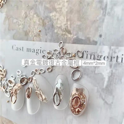 質感超好👍🏻復古鏤空真金電鍍金屬框/橢圓甲面瘦/淺金/玫瑰金框/滿鑽/玫瑰金美甲/金框/卯釘/排鑽設計/美甲飾品