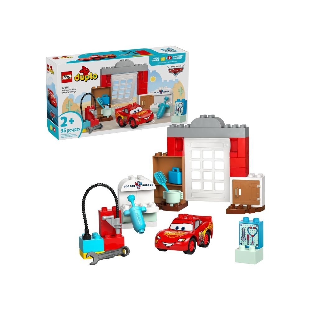 讓學前兒童暢玩樂高? 得寶? 迪士尼與皮克斯 Cars 麥坤造訪韓大夫的車庫(10456)拼砌式幼兒玩具,照料他們最愛的拼砌式賽車玩具。此拼砌盒組將學前兒童送進迪士尼與皮克斯 Cars 系列電影的世界,同時透過創意遊戲幫助他們培養照顧能力。