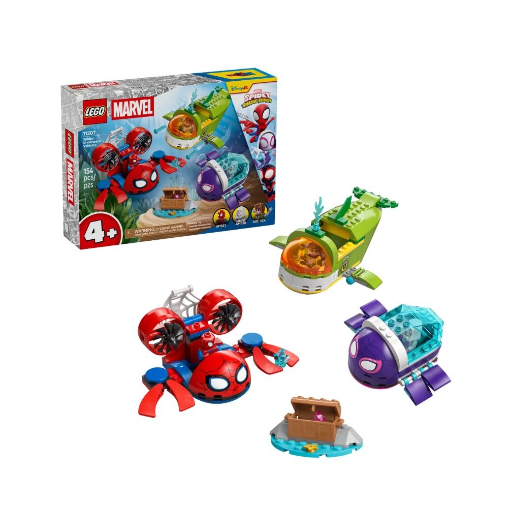 • 讓孩子遊玩蜘蛛人:水中載具,帶他們展開超級英雄潛水艇冒險 • 蜘蛛人、幽靈蜘蛛與八爪博士人偶和 3 個載具拼砌玩具 • 好玩的配件可鼓勵小小超級英雄探索創意遊戲 • 3 艘潛水艇:螃蟹有網子、海龜可打開,鯨魚則配備射擊器 • 此送禮點子適合喜歡蜘蛛人和電視影集《蜘蛛人與他的神奇朋友們》的粉絲 • 有趣的圖解指南提供直觀的拼砌說明 • 適合 4 歲以上玩家的樂高® 盒組帶領孩子走進想像遊戲的世界 • 這款 154 片裝的拼砌盒組中,鯨魚潛水艇長逾 14 公分