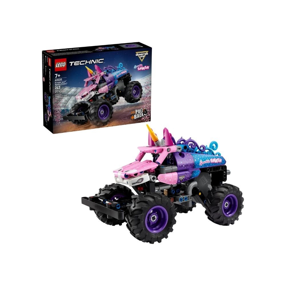 • Monster Jam™ Sparkle Smash™ 迴力怪獸卡車適合 7 歲以上孩子 • 將獨角獸怪獸卡車往後拉再放開,讓它向前飛馳 • 包含閃亮的星星與獨角獸的角,就像 Sparkle Smash™ 實車一樣 • 讓孩子重現喜愛的 Monster Jam™ 時刻,推動創意遊戲 • 這款好禮適合 7 歲以上、喜愛怪獸卡車與獨角獸玩具的男生、女生與孩子 • 探索樂高® 科技系列盒組(均為單獨販售),發掘更多遊戲靈感 • 用 LEGO® Builder 應用程式儲存進度、放大與旋轉 3D 盒組 • 這款 243 片裝的盒組包含長逾 19 公分的卡車玩具模型