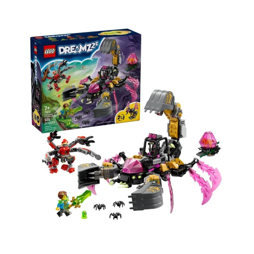 • LEGO® DREAMZzz™ 惡夢魔蠍挖土機玩具適合 7 歲以上男生、女生與孩子 • 孩子可選擇拼砌魔蠍挖土機或生化機械黃蜂 • 此盒組包含鑽石蛋副模型、幻想生物和機甲 • 馬特歐、庫柏與愛麗卡等 3 隻人偶可帶動想像力無限的扮演遊戲 • 此盒組是孩子生日的絕佳送禮點子,也是適合男孩與女孩的奇幻好禮 • 包含故事導向拼砌說明,也可在 LEGO® Builder 應用程式中查看 • 探索其他 LEGO® DREAMZzz™ 系列拼砌盒組(另售) • 這款 505 片裝的盒組拼砌成魔蠍挖土機形態時寬逾 23 公分