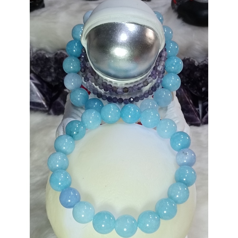 沉浸於寧靜的海洋能量,海藍寶水晶手鍊,散發清澈的光芒,注入平靜與和諧。寶藍色的光輝,彷彿湛藍海水的倒影。