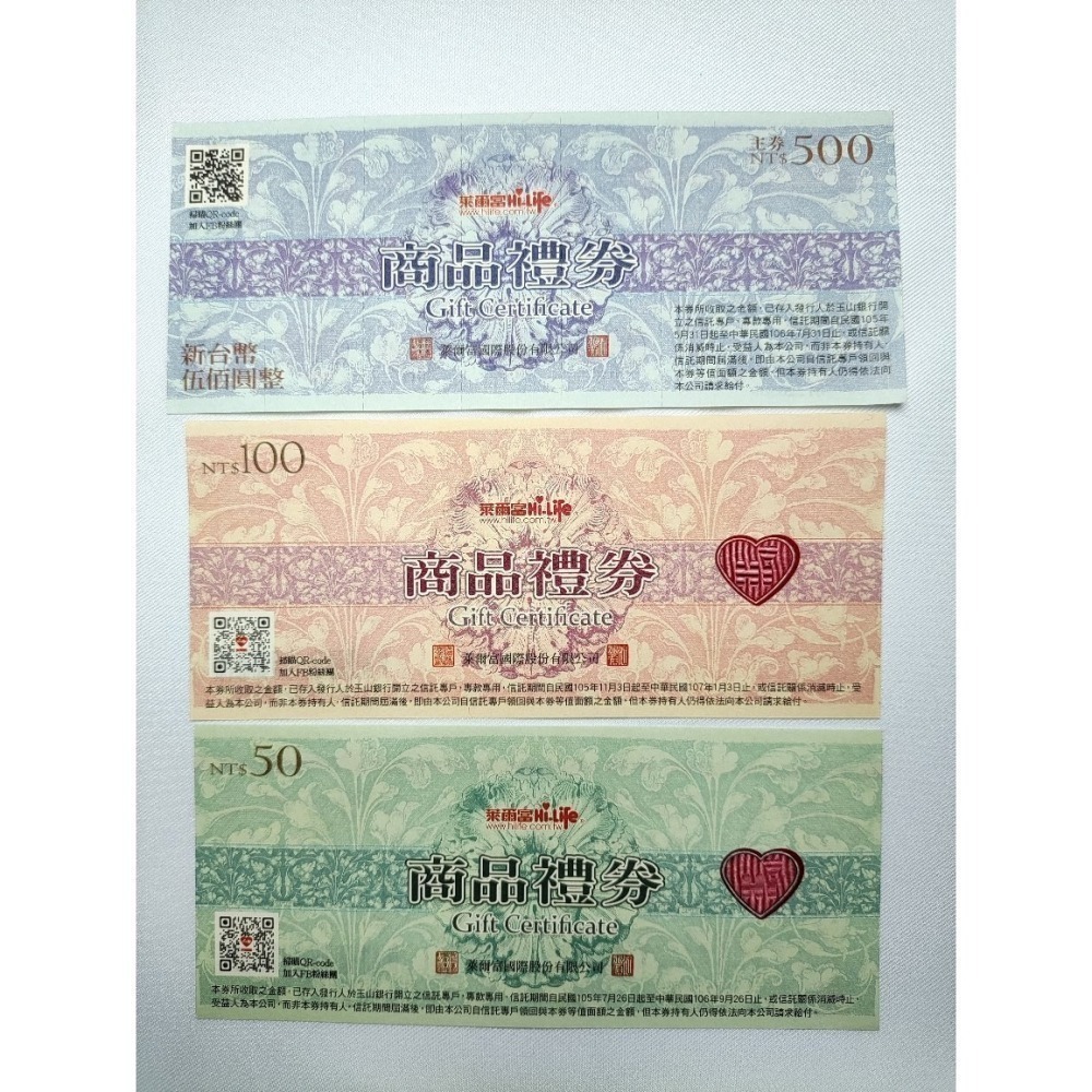 萊爾富商品禮券 50/100/50
