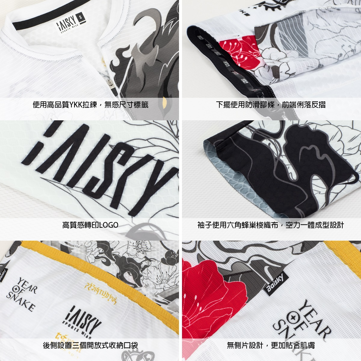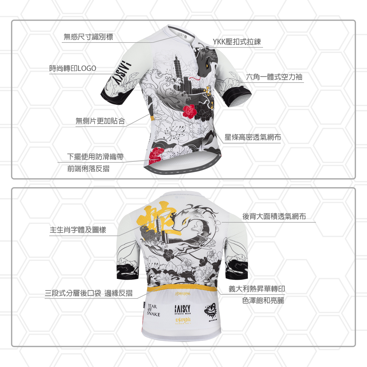 ● 袖子採六角蜂巢狀空力一體成型