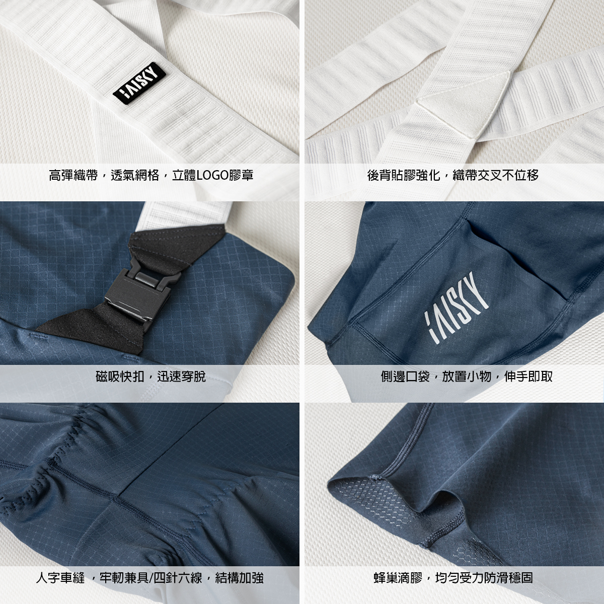 ● 高彈織帶,透氣網格,立體LOGO膠章