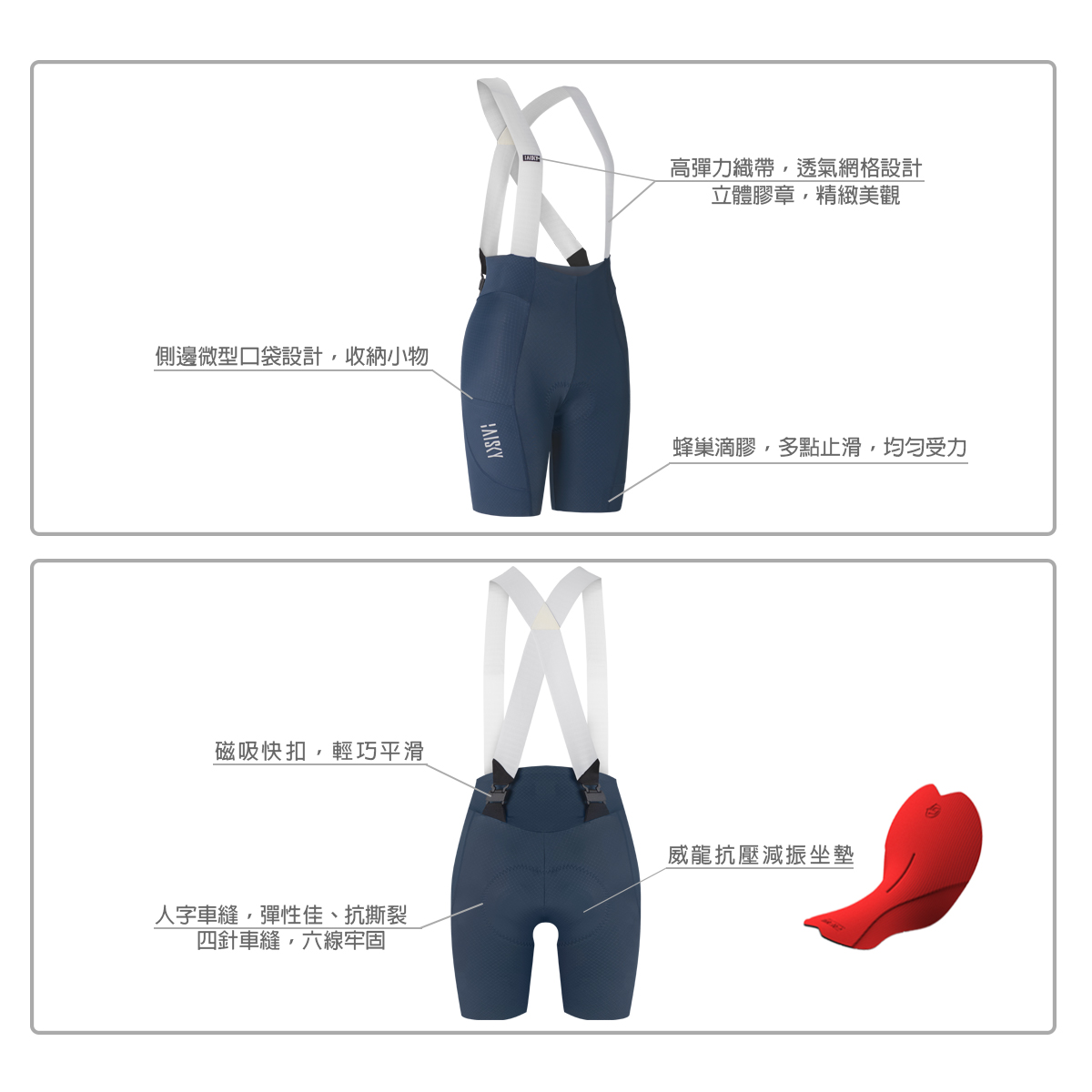 ● 褲口內側蜂巢滴膠,均勻受力防滑穩固