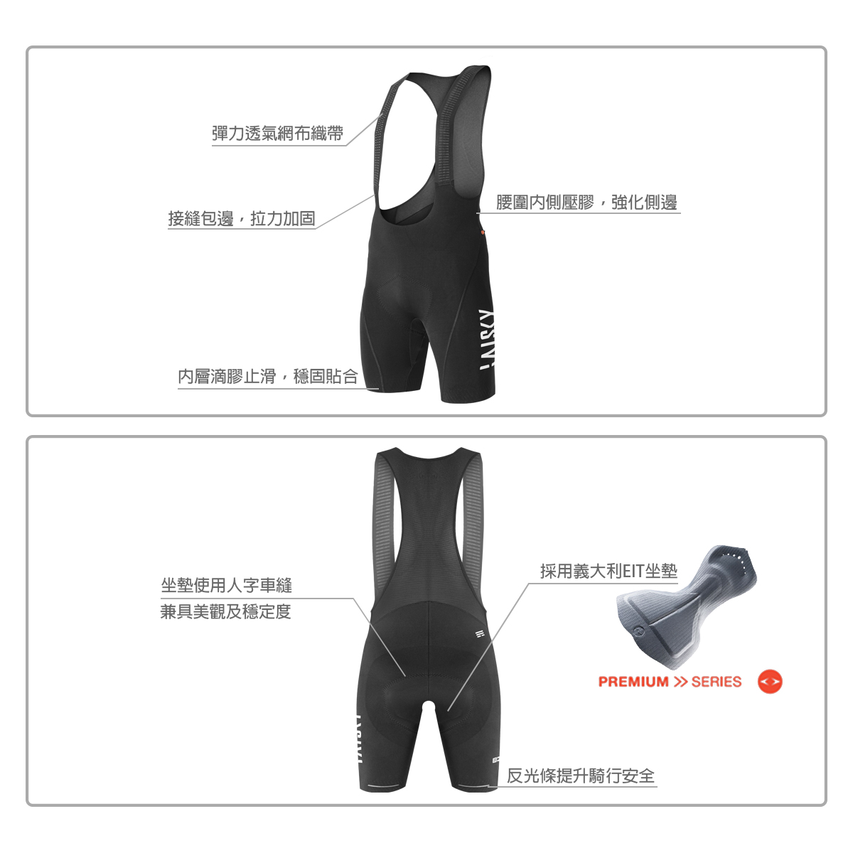 ● 腳口內側滴膠工藝,防滑穩固;後側反光條提升騎行安全
