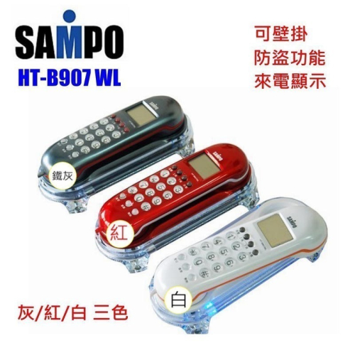 SAMPO聲寶來電顯示有線電話 HT-B907WL(鐵灰/紅色/白色),獨特的設計,水晶底座增添不少高貴氣質,可查詢來電號碼及去電號碼,讓您隨時可以撥打電話也不需忘記剛剛的來電哦!