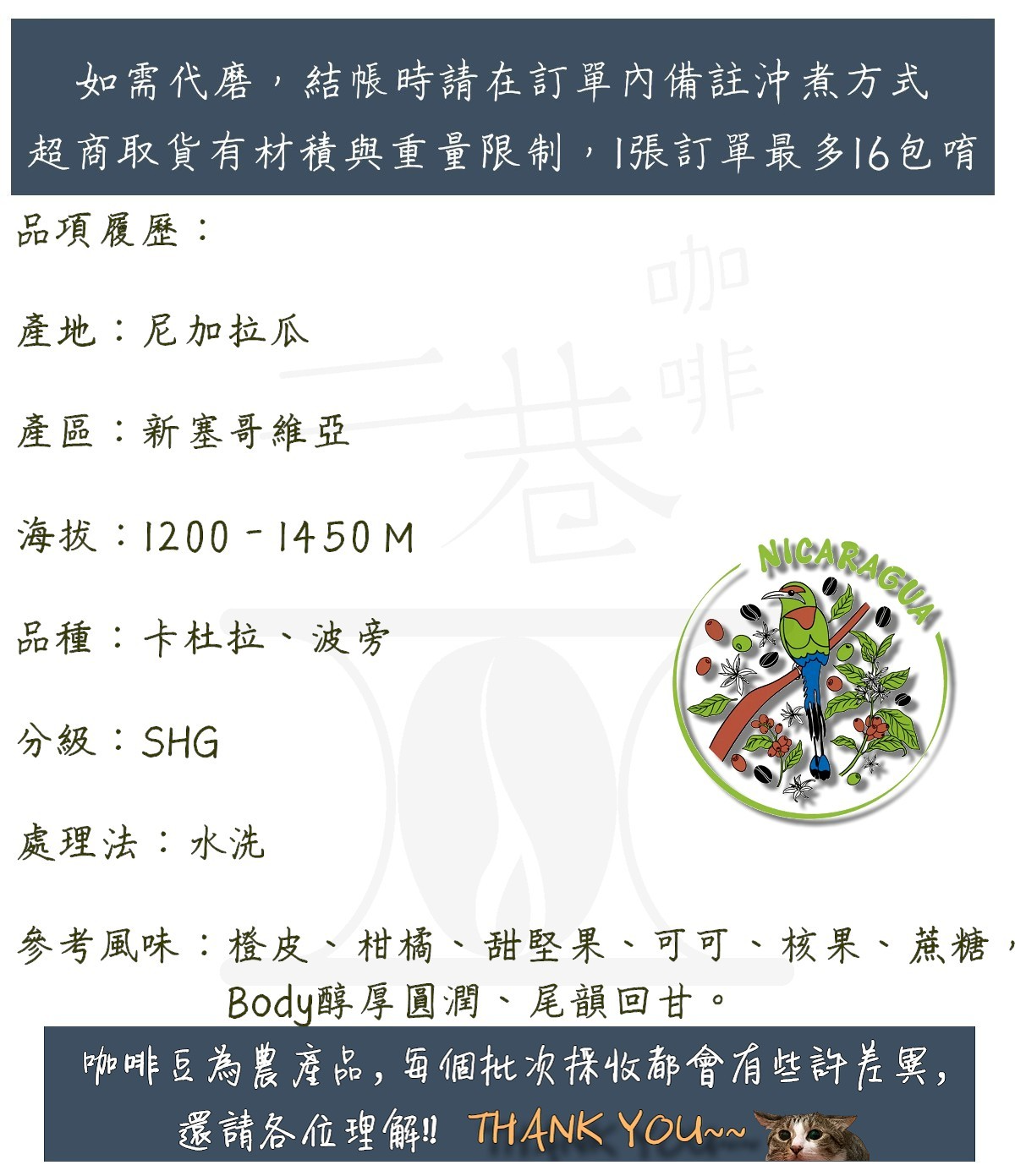 『二巷』☆甜感柔和☆尼加拉瓜 新塞哥維亞 守望者 水洗 半磅裝 接單後烘焙可手沖義式美式冰滴虹吸摩卡壺冰釀