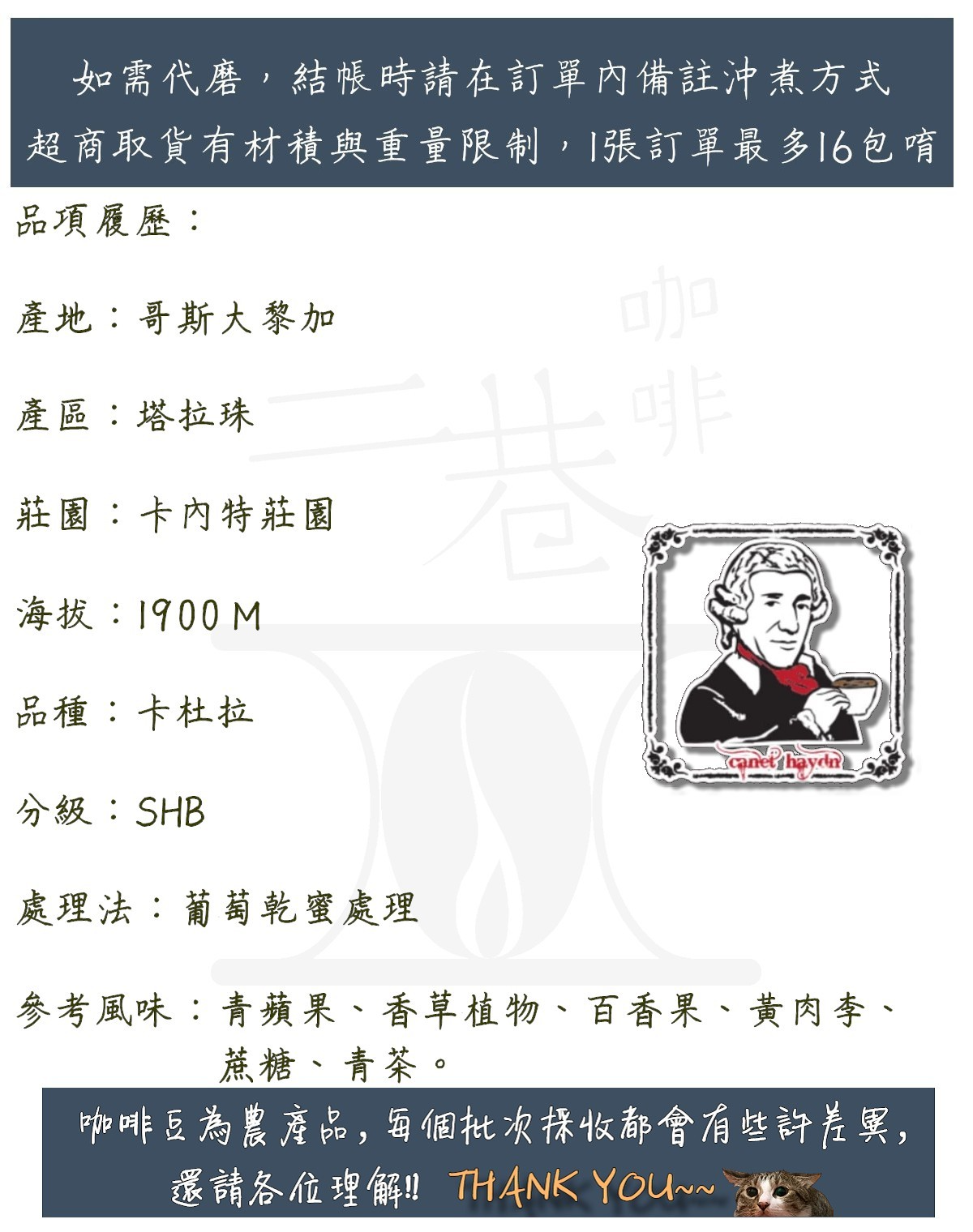 『二巷』☆音樂家系列-海頓☆哥斯大黎加 卡內特莊園 葡萄乾蜜半磅裝精品咖啡豆接單後烘焙可手沖義式美式冰滴虹吸摩卡壺冰釀