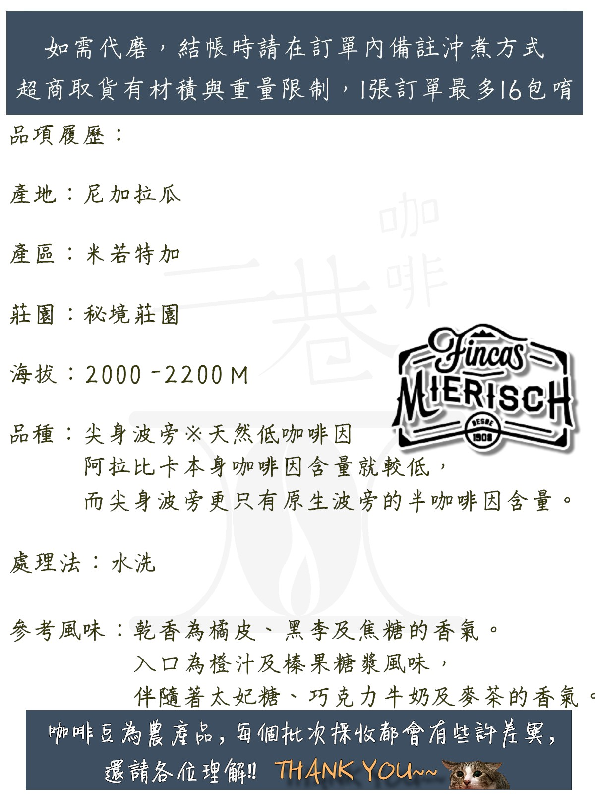 『二巷』☆低咖啡因☆尼加拉瓜 秘境莊園 尖身波旁水洗 半磅裝精品咖啡豆 接單後烘焙可手沖義式美式冰滴虹吸摩卡壺冰釀