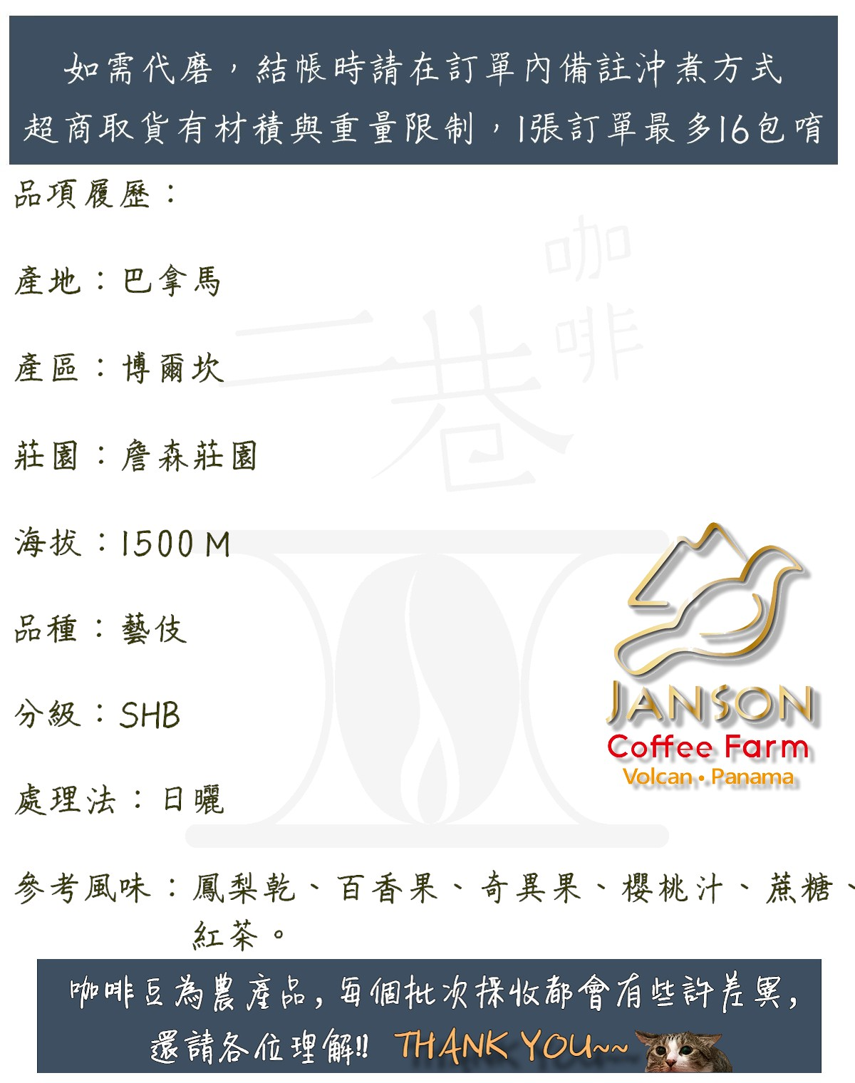 『二巷』☆BoP季軍☆巴拿馬 詹森莊園 藝伎 日曬 半磅裝 精品咖啡豆 接單後烘焙 可手沖義式美式冰滴虹吸摩卡壺冰釀