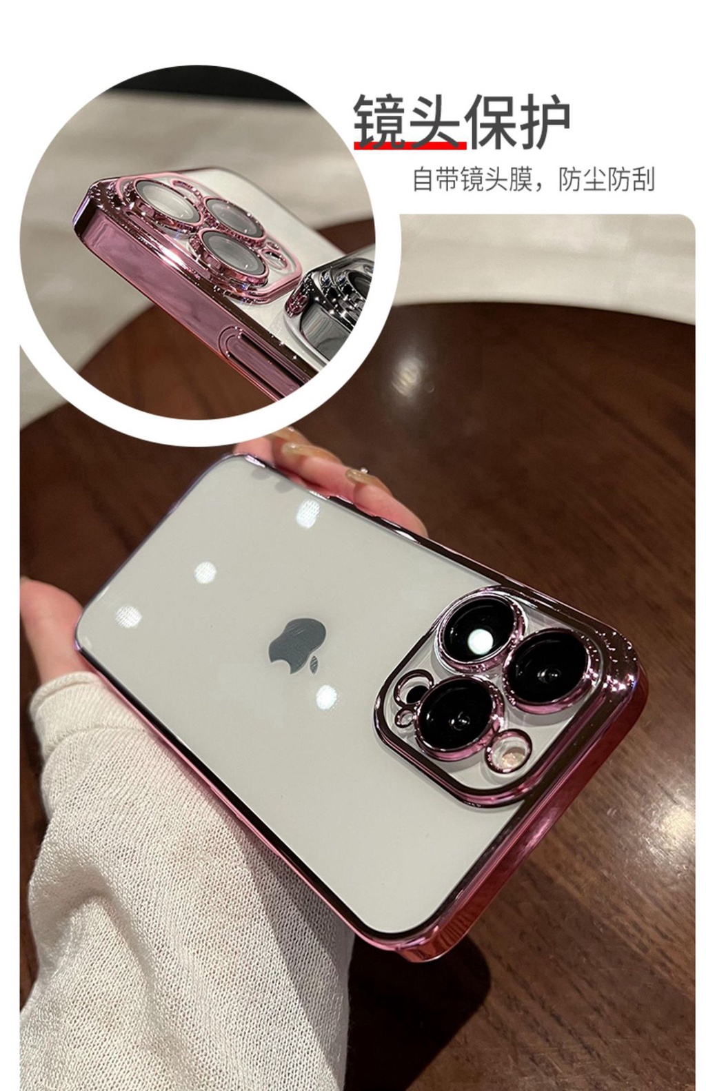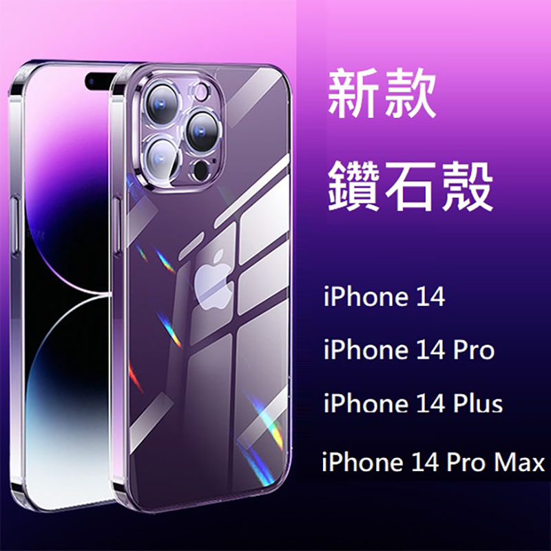 瑞克倉庫✱ 鑽石透明殼 PC電鍍亮邊 硬殼 鏡頭全包 防塵孔 iPhone 14 13 12 Pro Max全系列
