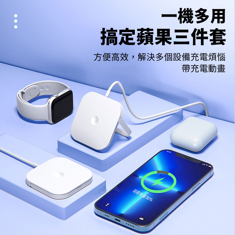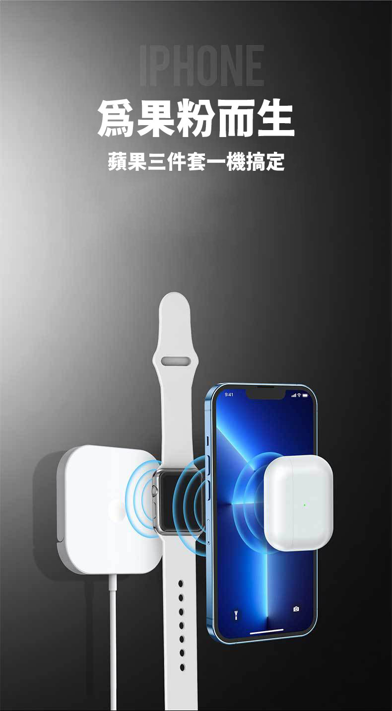 蘋果系列的手機/手錶/耳機皆可充 (前提是有無線充電功能的機種)