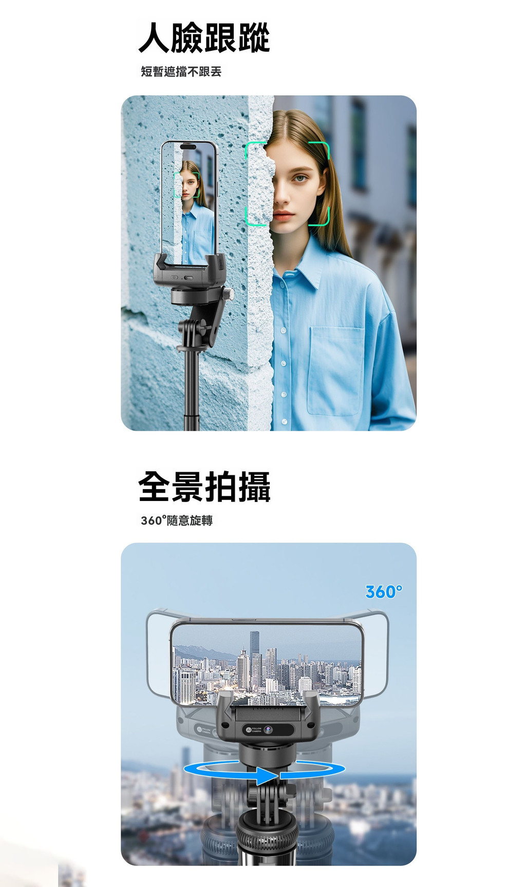 無論是低角度拍攝、360°全景,還是人臉跟蹤,都能輕鬆搞定,讓你的每一刻都成為焦點!