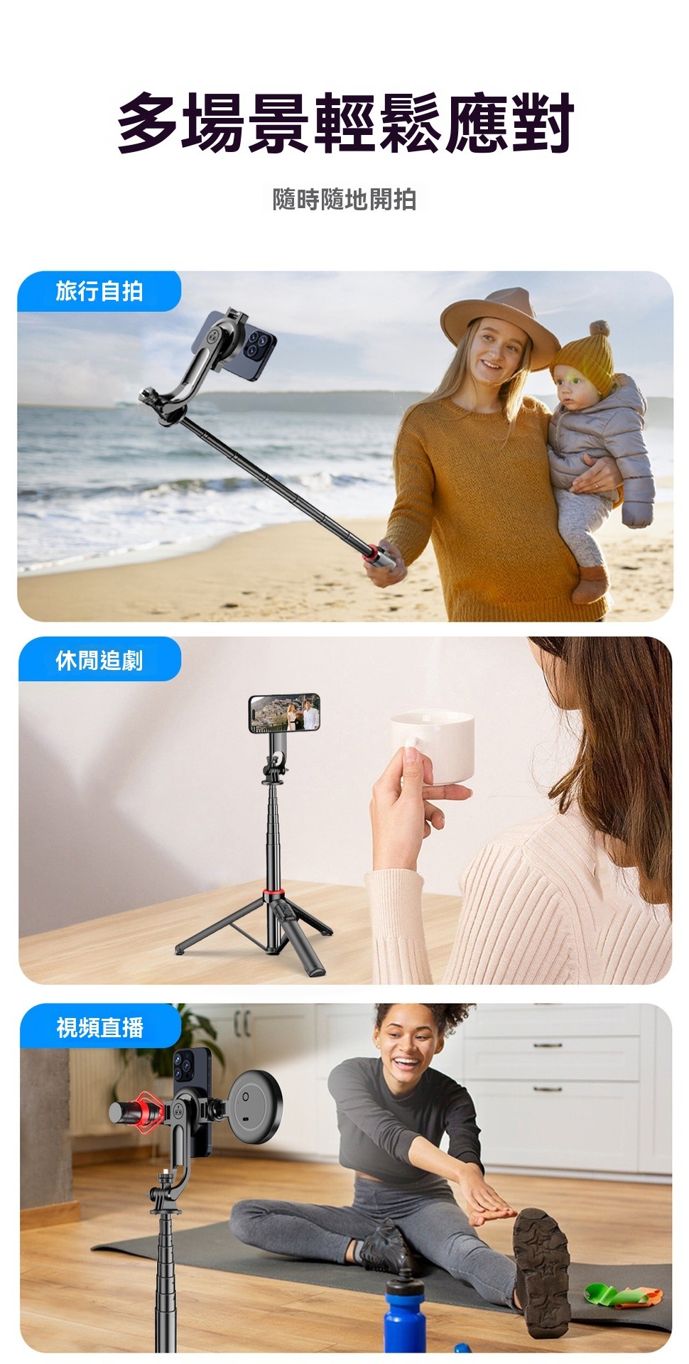 🔗 磁吸+夾式雙重設計:無論你喜歡磁吸還是夾具,這支自拍棒都能輕鬆搞定。