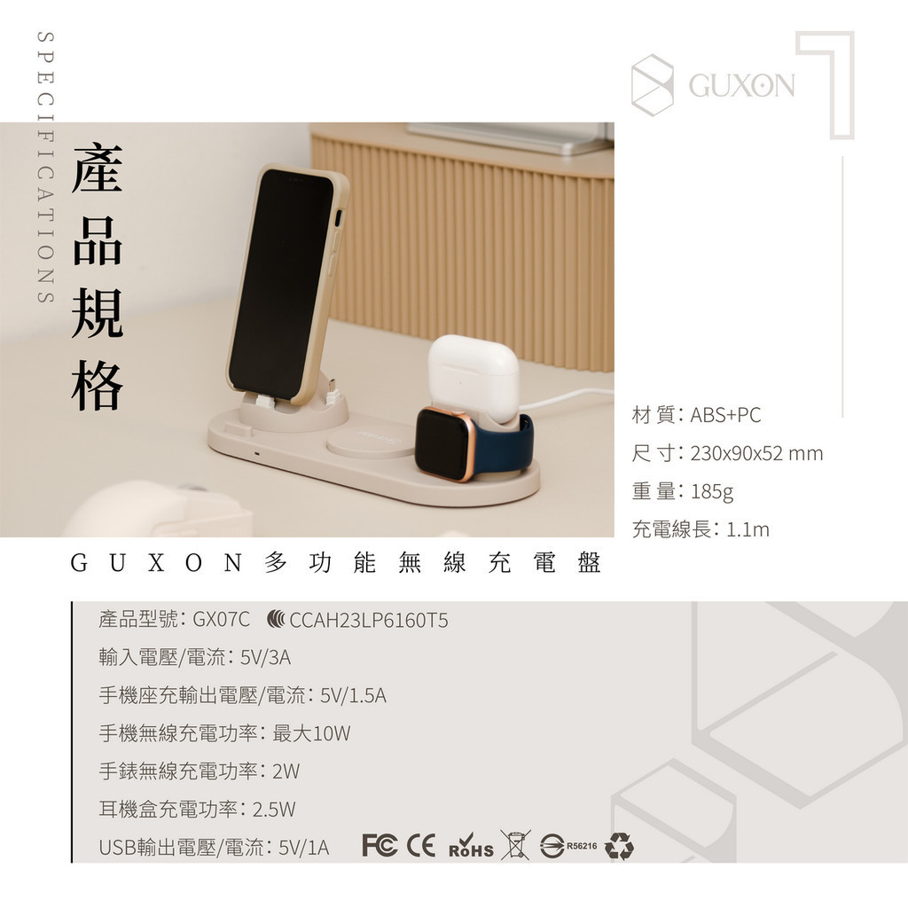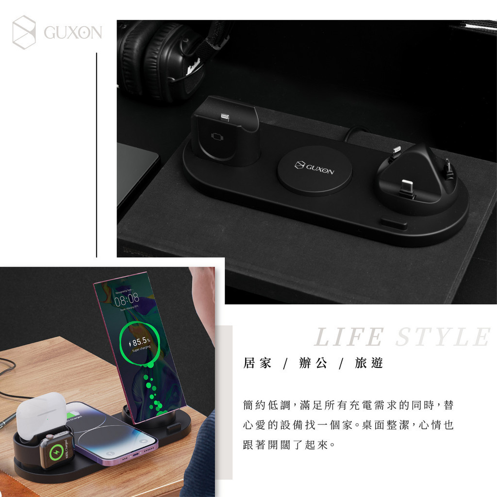 GUXON 六合一 多功能 無線充電座