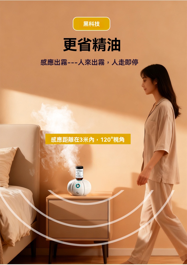 ✅ 賣點二:人來感應出霧,省精油高達 60%