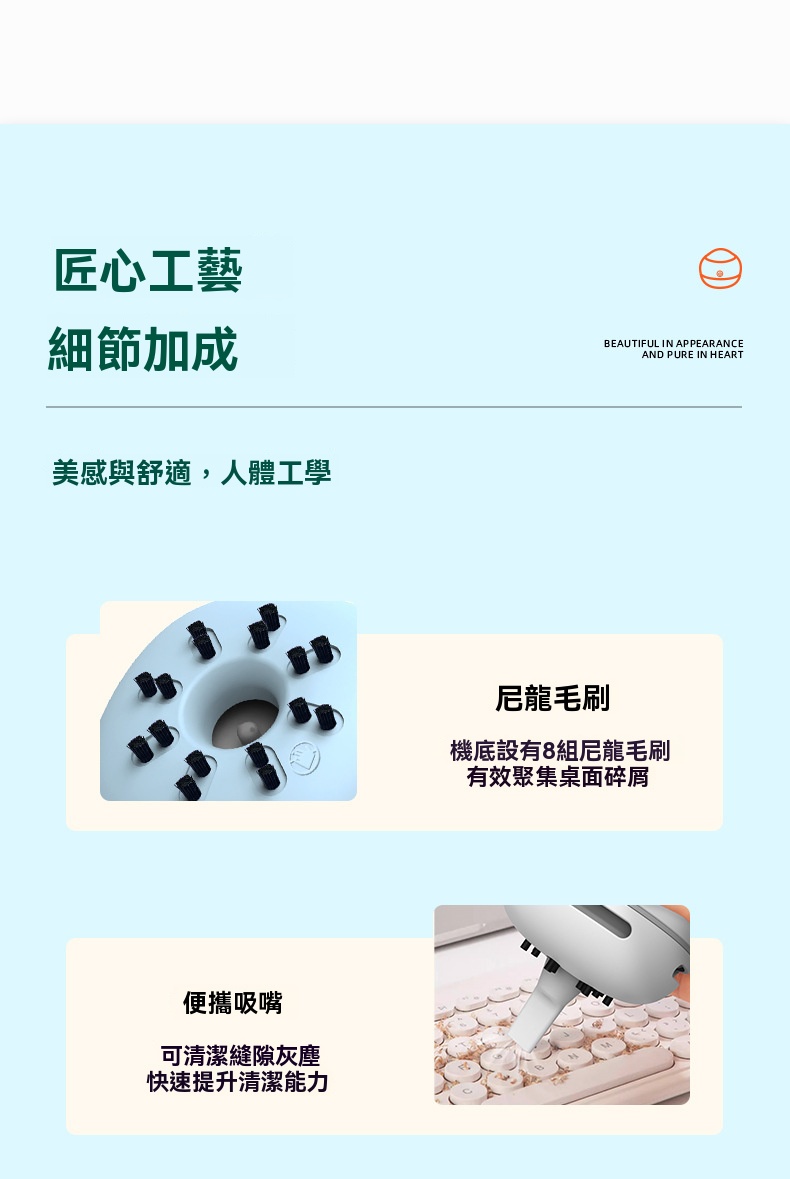 ✔ 底部刷毛輕鬆聚攏碎屑,吸塵效率翻倍