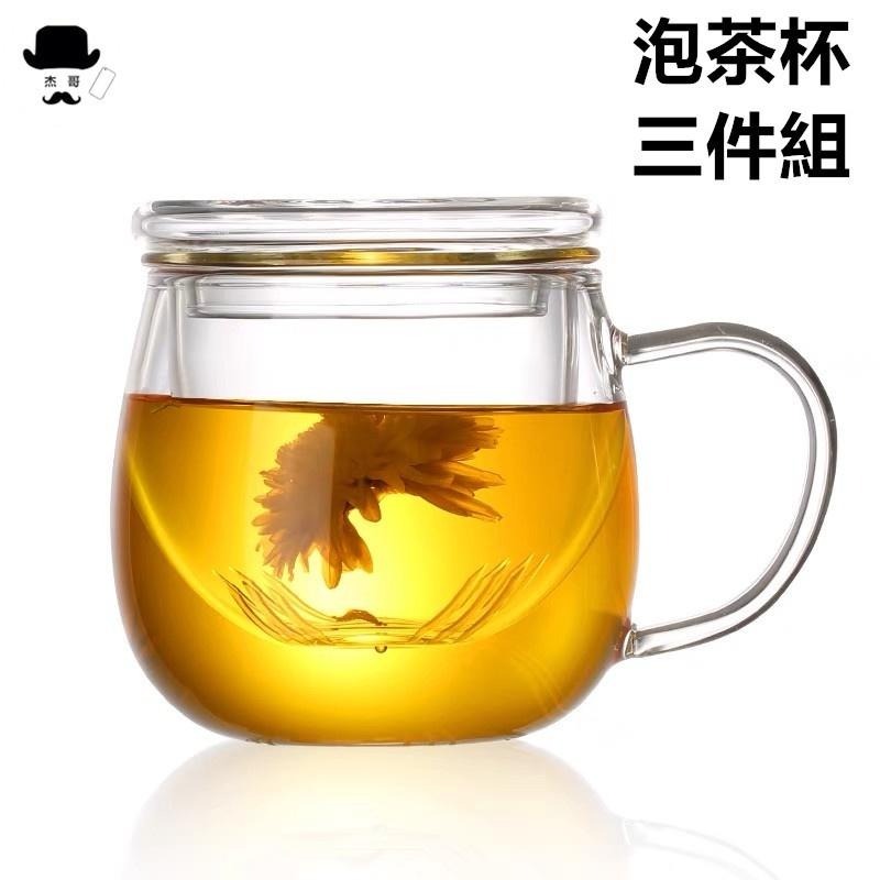 隔熱玻璃花茶杯三件組 🔥平價現貨🔥玻璃泡茶杯 花茶杯 玻璃杯 水杯 茶水分離杯 過濾泡茶杯 杯子 透明杯 過濾杯