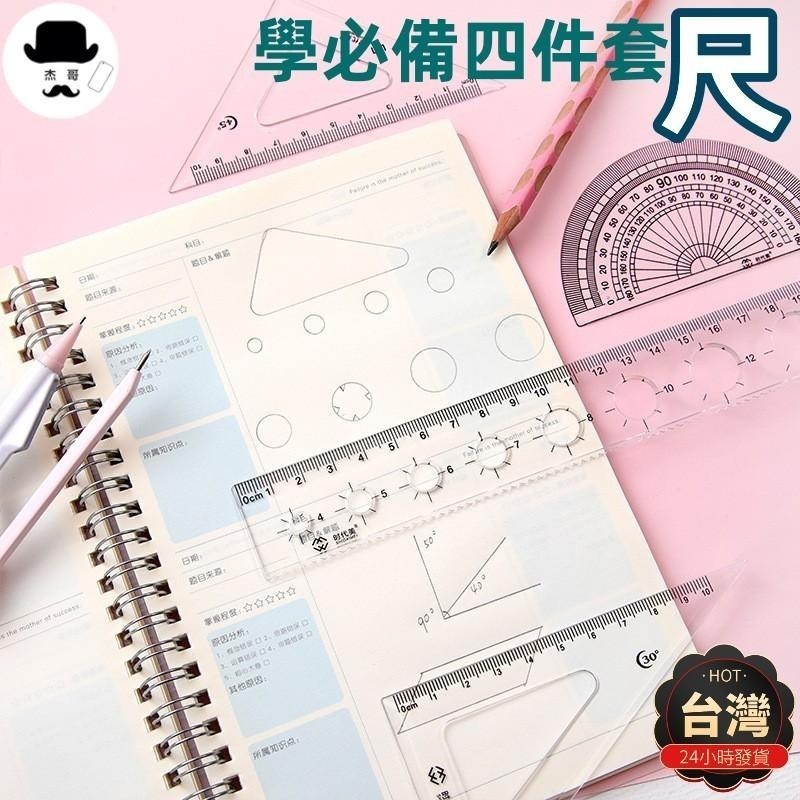 直尺 三角尺🔥平價現貨🔥量角器 三角板 直尺 半圓尺 20cm直尺 透明學生直尺 180度量角器 尺組四件裝