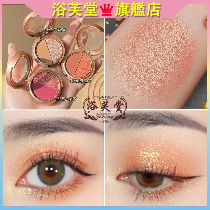 現貨 抖音同款眼影 雙色眼影 大地色眼影 眼部打底 雙色眼影盤大地色珠光啞光橘底金閃眼影盤彩 初學者易上色防水不飛粉眼影