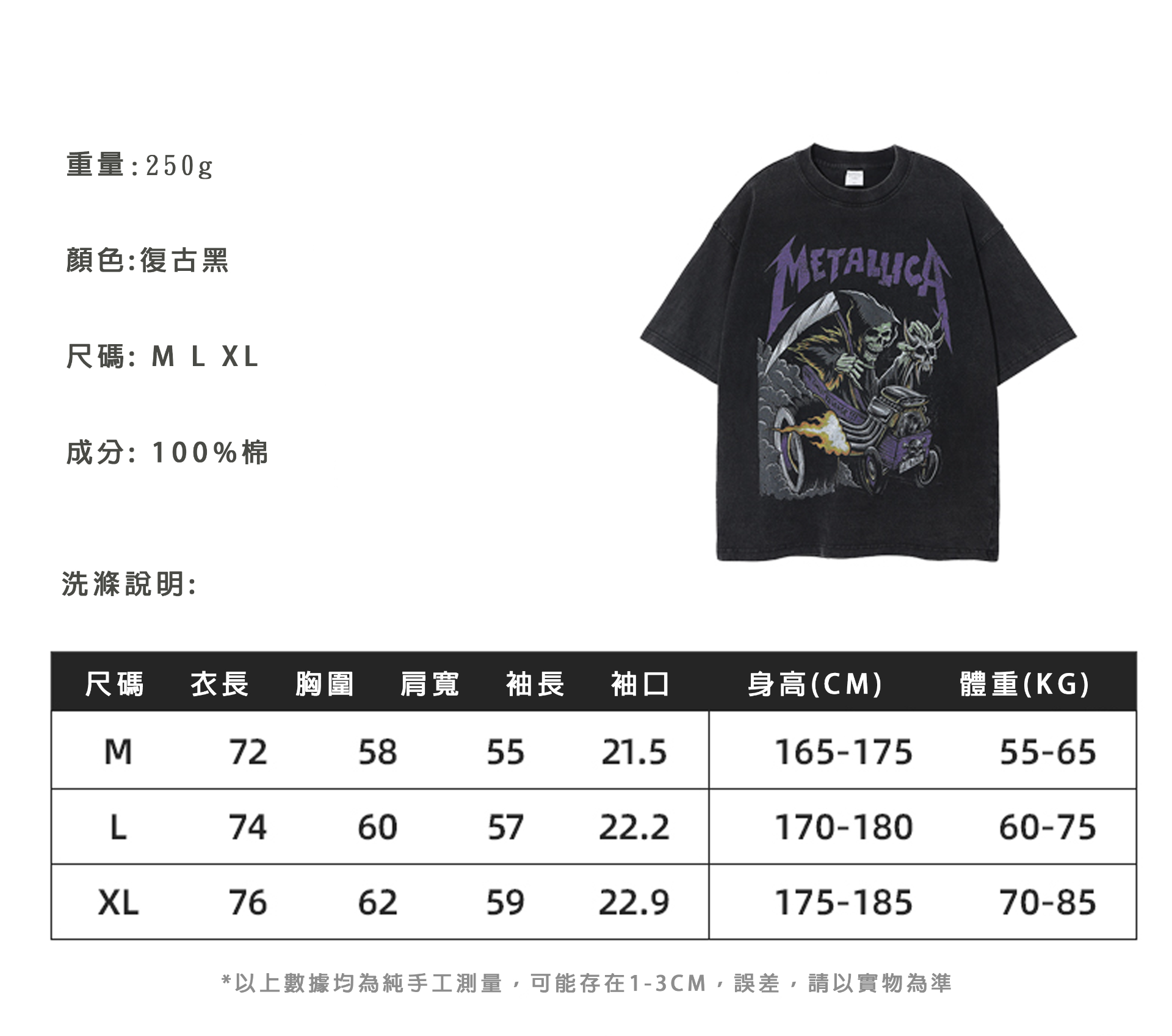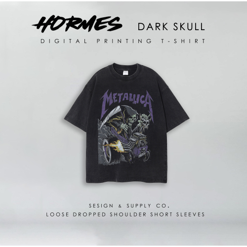 [HORMES] 5226 復古黑 洗水 做舊 仿舊 暗黑 骷髏 印花 寬鬆版型 男女皆可 短袖 水洗踢 短T