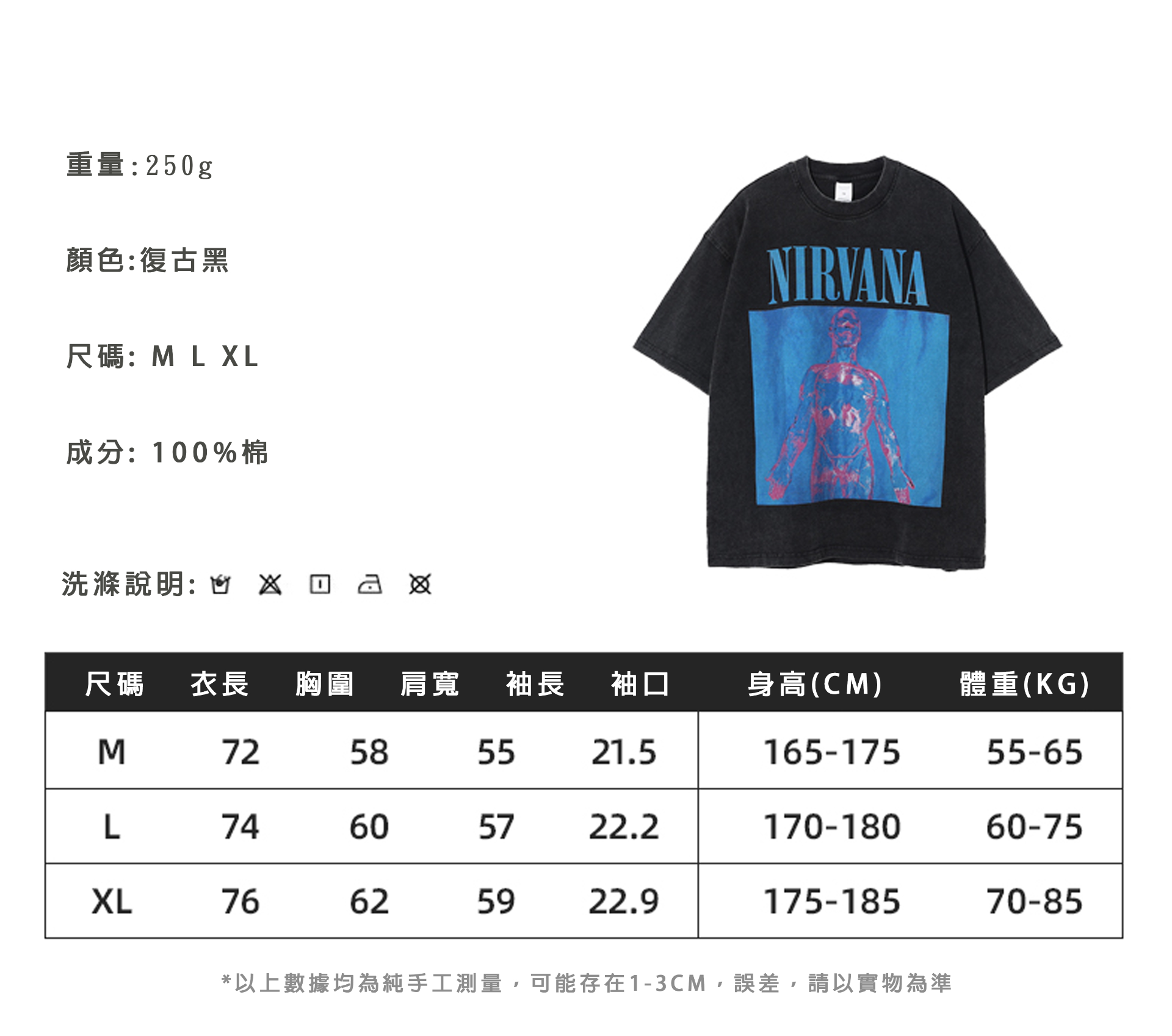 [HORMES] 5228 新款復古做舊涅槃樂隊印花T卹