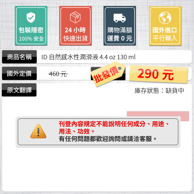 ID 自然感水性潤滑液 4.4 oz 130 ml | 水基水溶性愛人體按摩潤滑劑 美國