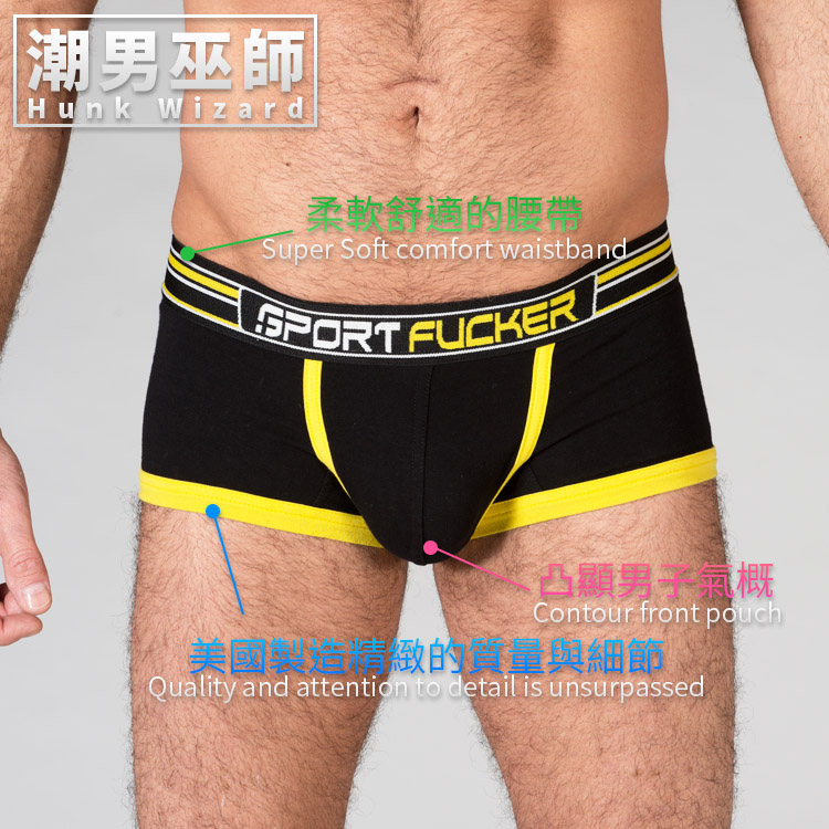 Sport Fucker 男性貼身四角內褲 黑黃 Trunk |美國製造 時尚型男凸顯男子氣概