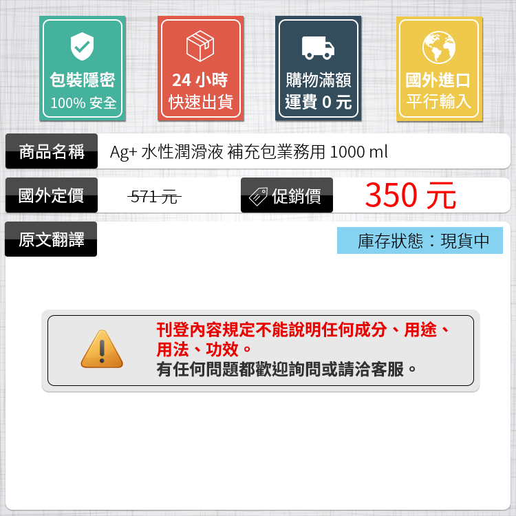 Ag+ 水性潤滑液 補充包業務用 1000 ml | 銀離子 抗菌 消臭 低黏度中高濃度 日本A-one
