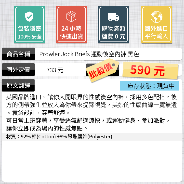 Prowler Jock Briefs 運動後空內褲 黑色 | 性感提臀 運動護襠囊袋透氣激凸魅力 健身體能訓練