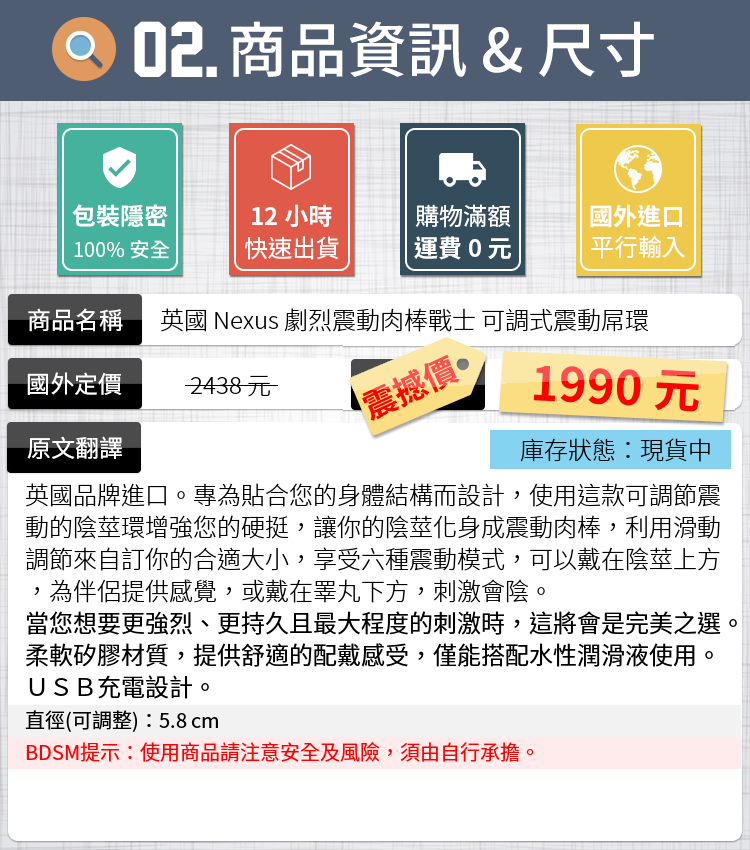 英國品牌進口。專為貼合您的身體結構而設計,使用這款可調節震動的陰莖環增強您的硬挺,