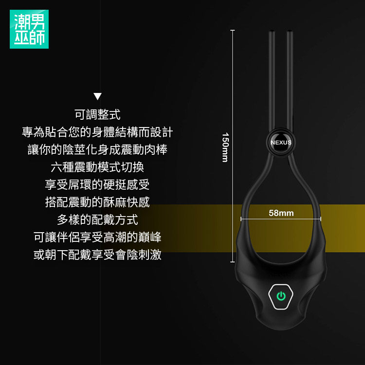 英國 Nexus 劇烈震動肉棒戰士 可調式震動屌環 | 調整式硬挺陰莖勃起持久男性陰莖環激凸龜頭