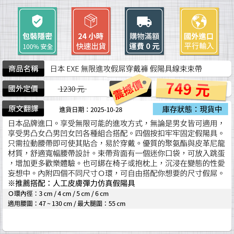 日本 EXE 無限進攻假屌穿戴褲 假陽具線束束帶 | 男女適用 陰莖綁帶尼龍繫帶迷你口袋跳蛋