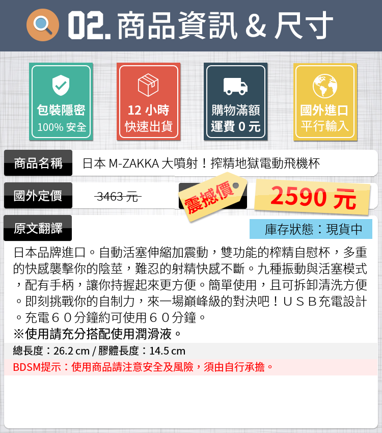 日本品牌進口。自動活塞伸縮加震動,雙功能的榨精自慰杯,多重的快感襲擊你的陰莖,難忍的射精快感不斷。