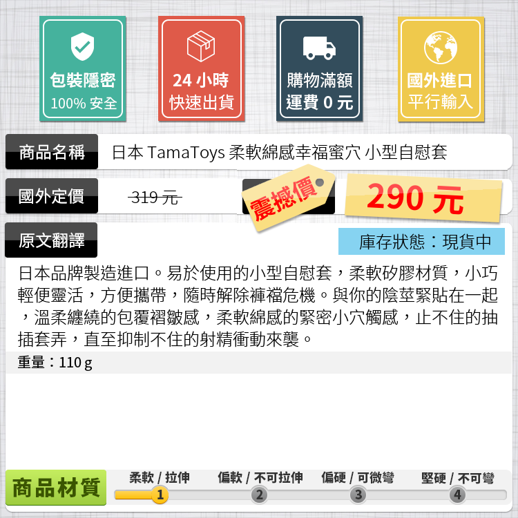 日本品牌製造進口。易於使用的小型自慰套,柔軟矽膠材質,小巧輕便靈活,