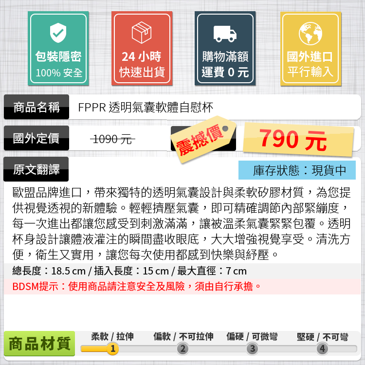 FPPR 透明氣囊軟體自慰杯 | 捏握柔軟氣墊透視內射射精爽尻狠尻高潮飛機杯 重複使用