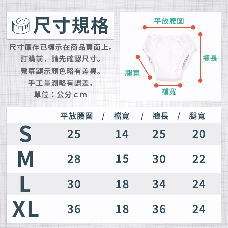 加拿大品牌進口,95%棉質+5%彈力纖維,ABDL棉質布面成人寶寶的訓練褲,中間有一塊能吸收約一次的尿量,可以清洗、重複穿著。
