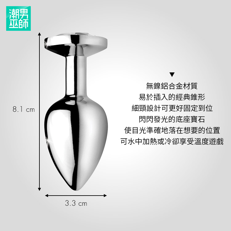 晶透寶石金屬肛塞 M尺寸 | 無鎳金屬光滑插入 後庭肛門開肛訓練括約肌快感外出配戴調教