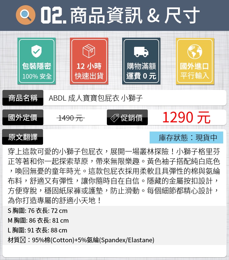 ABDL 成人寶寶包屁衣 小獅子 | Rearz 連體睡衣 連體衣 哈衣 爬爬服 連身衣