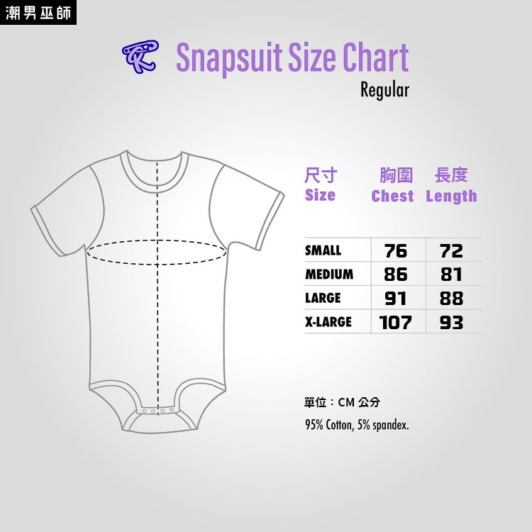 S 胸圍: 76 衣長: 72 cm|M 胸圍: 86 衣長: 81 cm|L 胸圍: 91 衣長: 88 cm|材質:95%棉(Cotton)+5%氨綸(Spandex/Elastane)