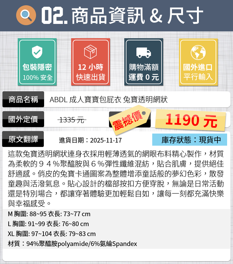 ABDL 成人寶寶包屁衣 兔寶透明網狀 | LittleForBig 連體睡衣 連體衣 哈衣 爬爬服 連身衣