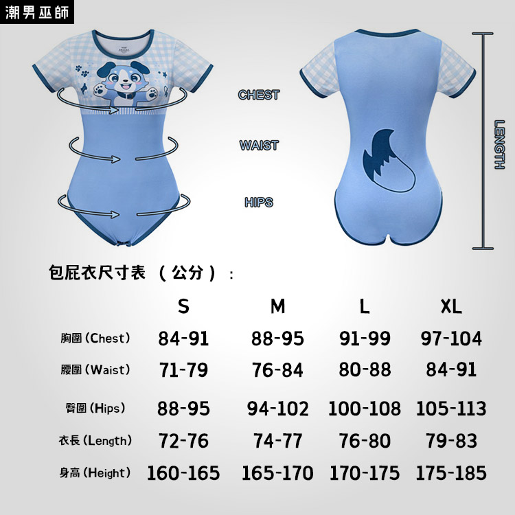 犬獸人連身衣,化身活潑小狗狗!俏皮卡通狗狗圖案搭配閃亮星星、腳印與骨頭點綴,搖尾巴的模樣超級吸睛。95%聚酯纖維與5%彈性纖維混紡布料,柔軟又透氣,讓你自在活動不卡卡。貼心下襠三顆金屬按扣,讓穿脫輕鬆不煩惱,每天都能萌力全開。