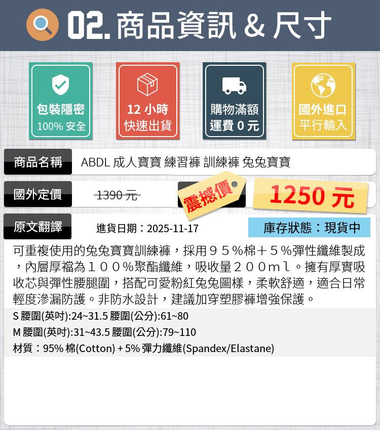 ABDL 成人寶寶 練習褲 訓練褲 兔兔寶寶 | littleforbig 品牌 棉布面 重複使用成人尿布