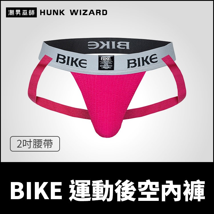 BIKE 男性 運動後空內褲 2吋腰帶桃紅色 | 囊袋護襠透氣排汗舒適激凸魅力性感 體育健身跑步體能訓練